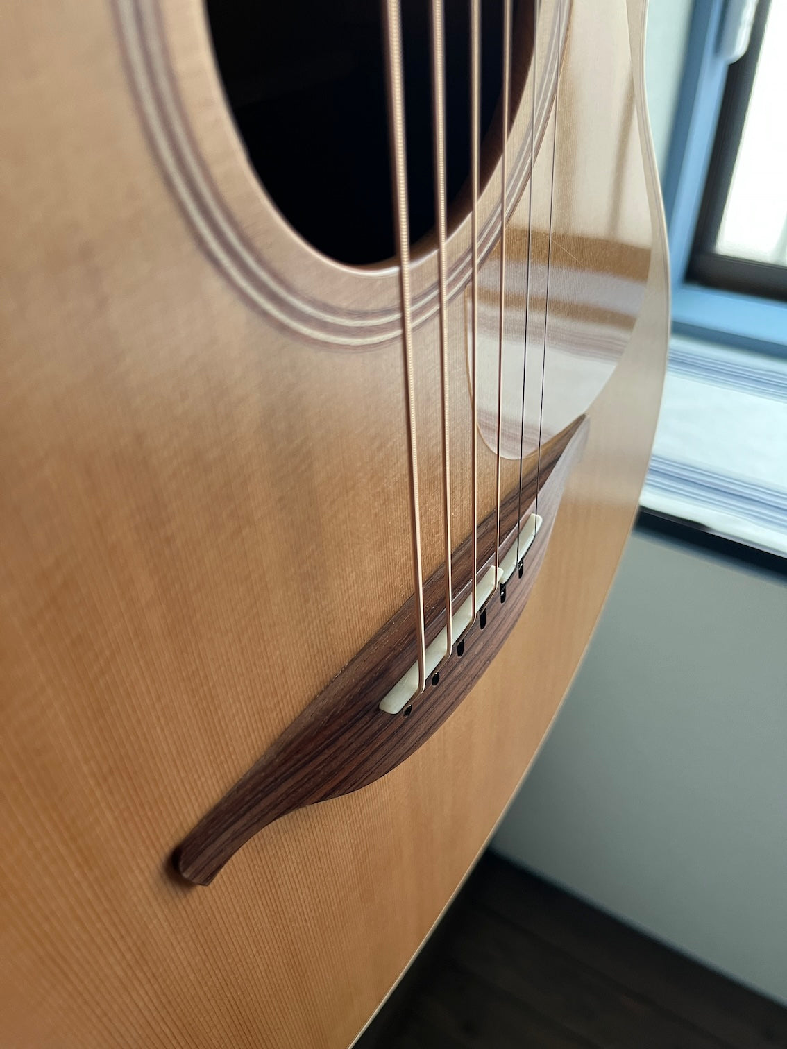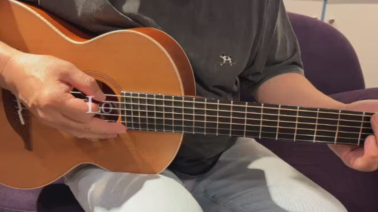 小さなボディからは想像できないような音量と低音の豊かさ、そしてシダーとマホガニーの組み合わせによるアタック感のある、明るい音色です。