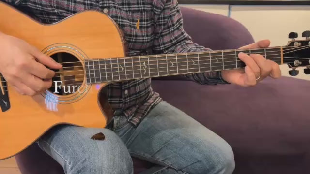 Features a 43mm nut width, wood binding, and special inlays on the fingerboard and bridge.