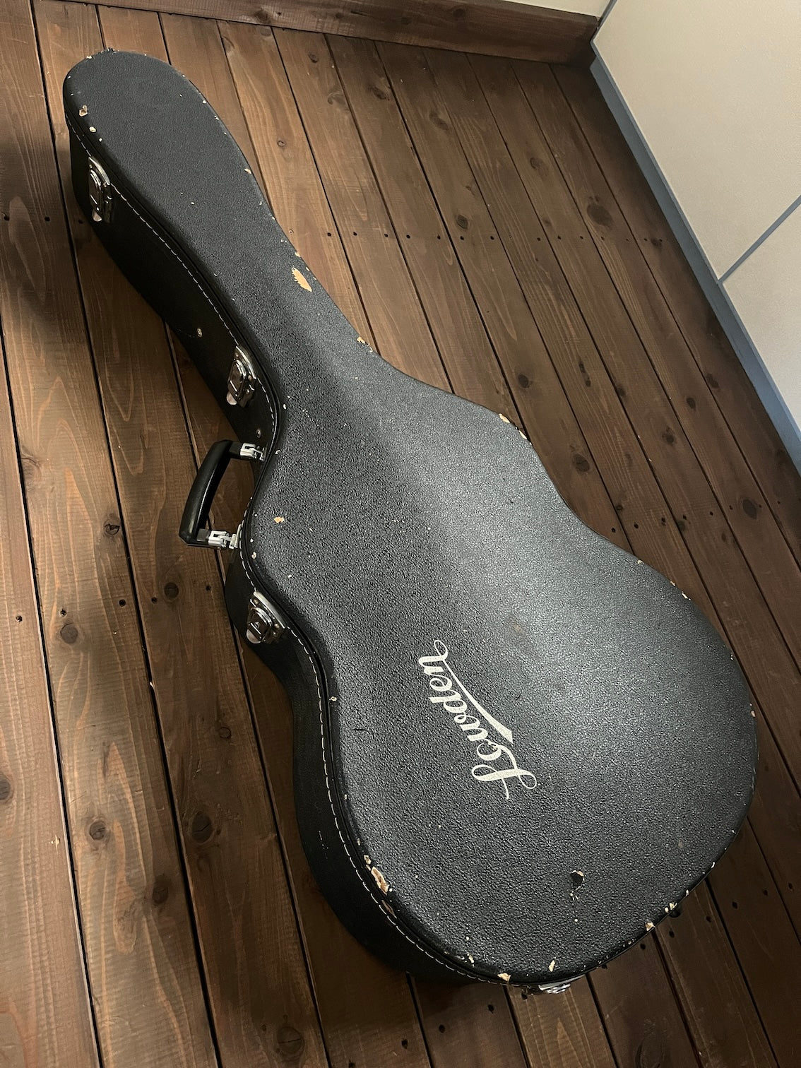 当時の純正と思われる古いハードケースが付属します。ケースの蝶番に破損があり、テープで応急的に補修しています。