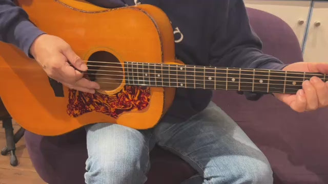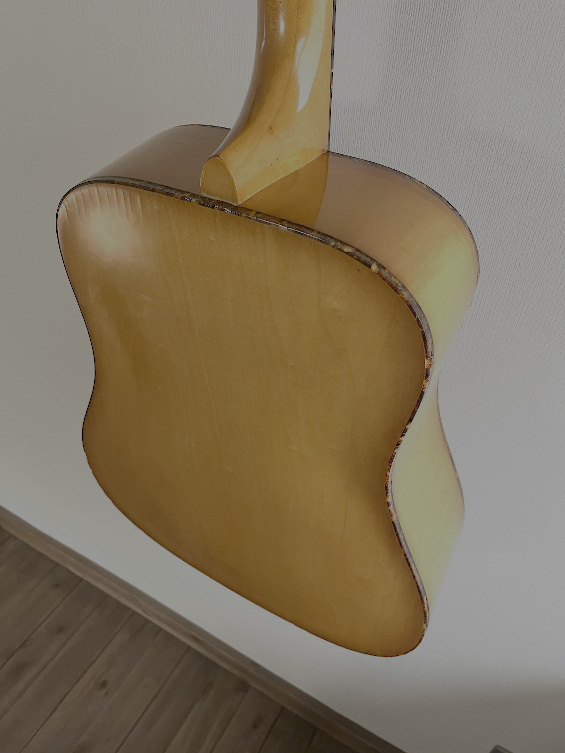 この時代のギブソンではよくある樹脂製のバインディングの劣化が見られ、ところどころ欠けています。また弦高を下げるためにブリッジが削られており、サドルの残りもほとんどありません。その他には大きな傷や材の割れ、修復歴などはありません。