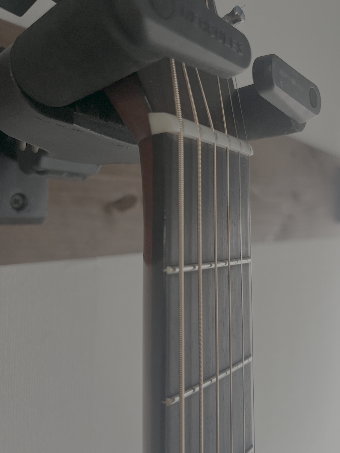 There are no noticeable scratches, dents, or repair history. The frets show only slight string marks on the 1st and 2nd frets of the 1st and 2nd strings, but wear is minimal and causes no issues.