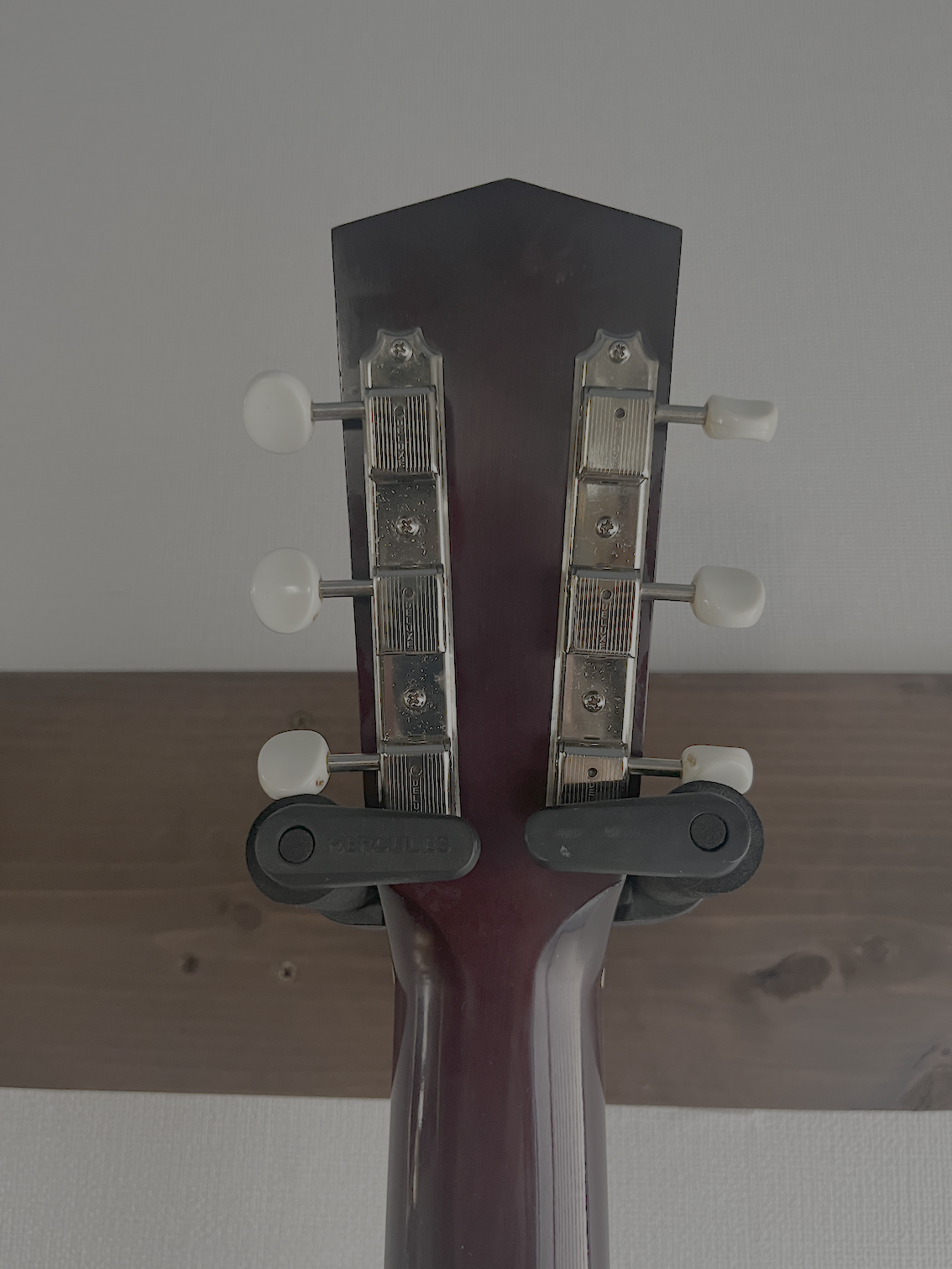 状態は素晴らしく、目立つような傷や打痕、修復歴などは見当たりません。ブリッジピン、サドルは交換されているようです。ストラップピンやピックアップの装着歴はありません。