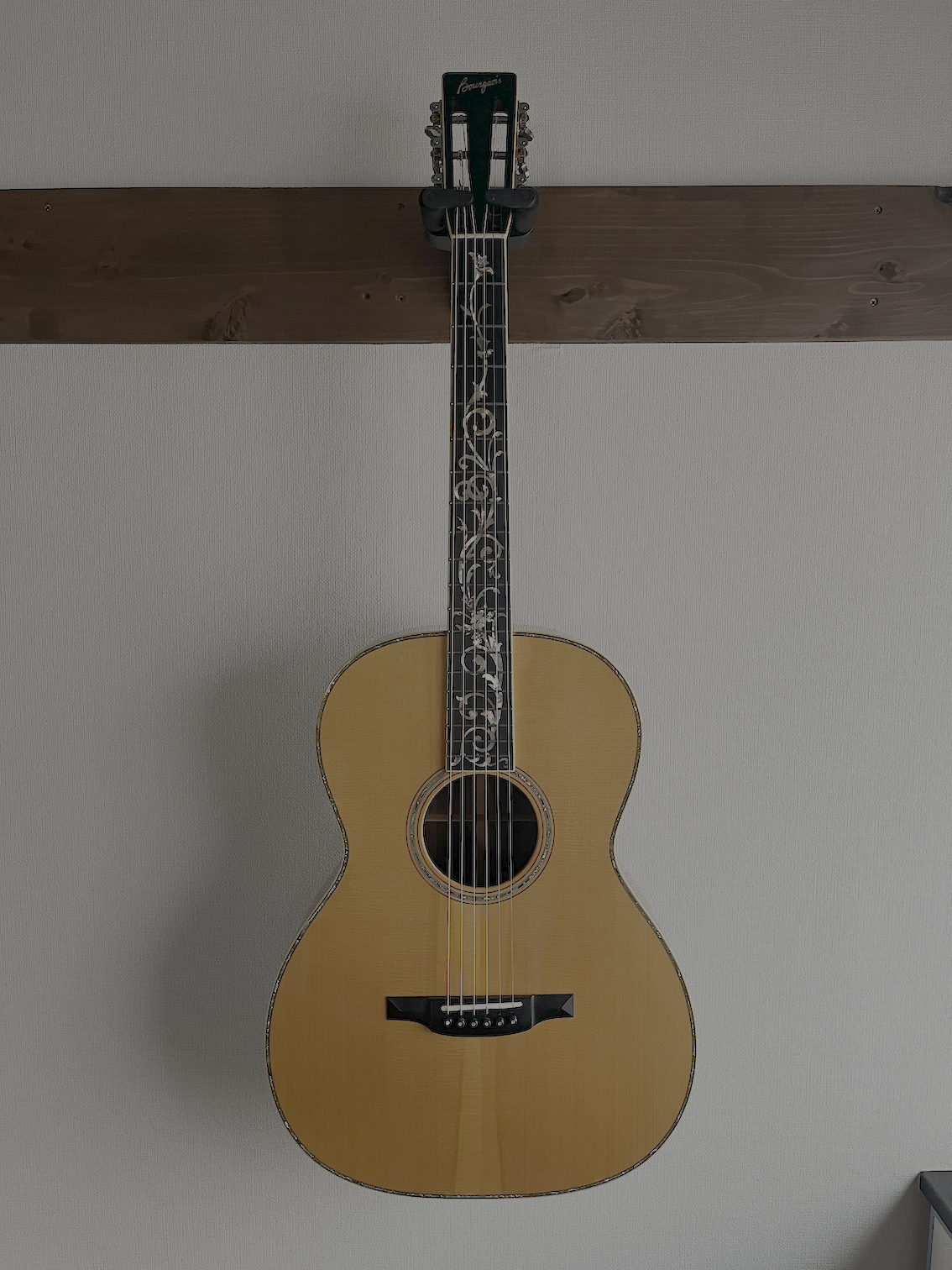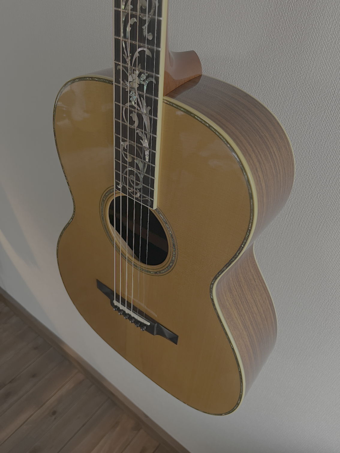 シリアルより、1996年製、指板に施されたツリー・オブ・ライフと、ボディのアバロンインレイが美しいギターです。
