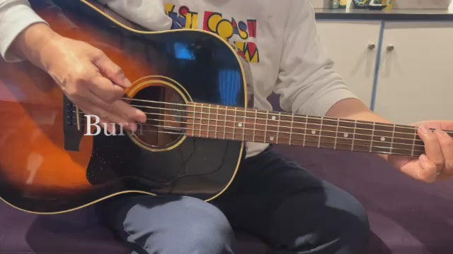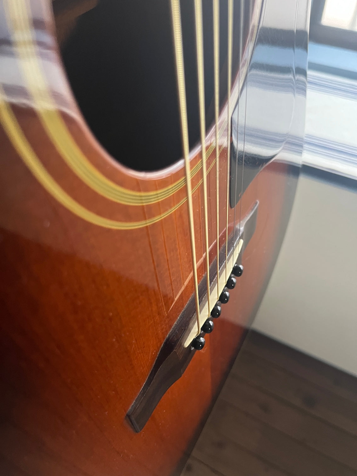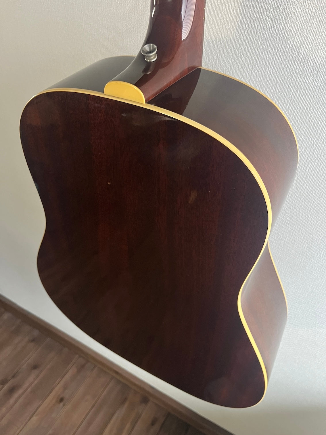 ギブソンのJ-45をイメージしたギターで、ラベルの色や形状まで似せています。