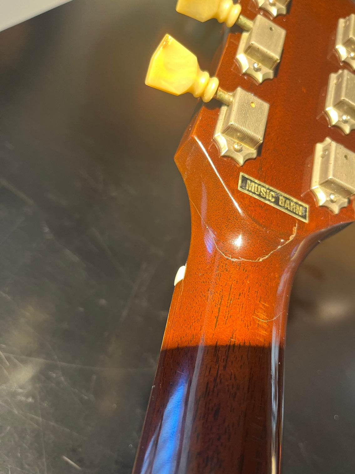This is a Burny guitar from the Fernandes brand. Since there is no Momose signature on the label, it is believed to have been manufactured by Kasuga Gakki between 1978 and 1980.