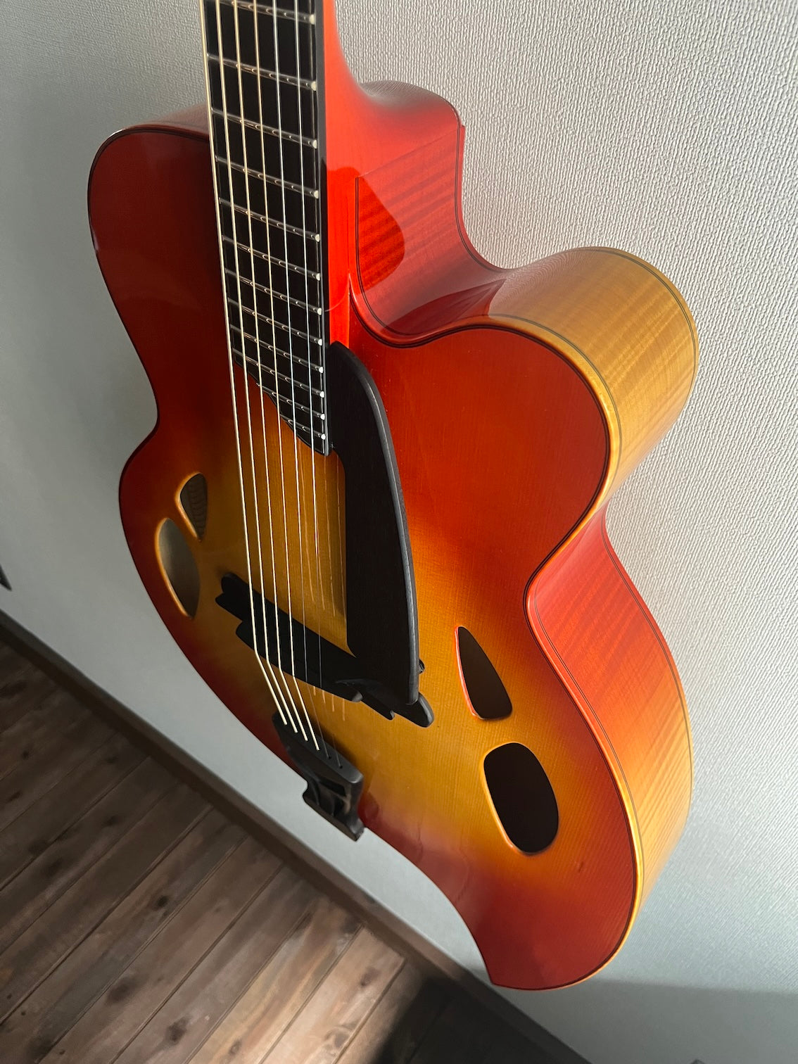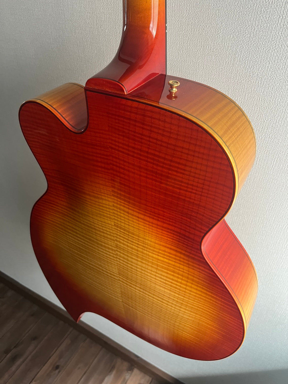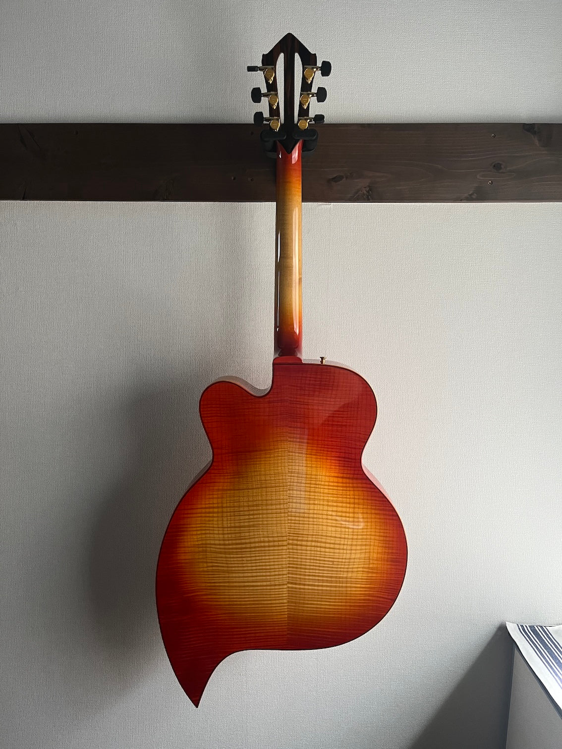 1950年代にジョン・ダンジェリコが制作したTeardropを、後継者のジミー・ダキストがリイシューしたギターです。日本の寺田楽器が委託されて2000年代に製作したギターです。