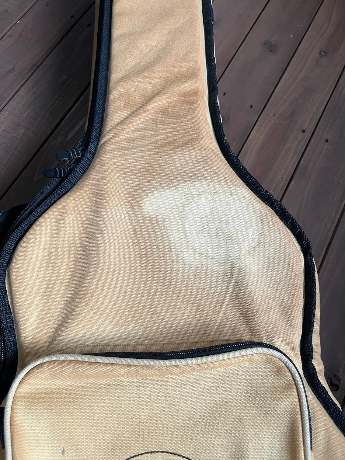 オリジナルの黄色いギグバックが付属します。表面に染みがあります。
