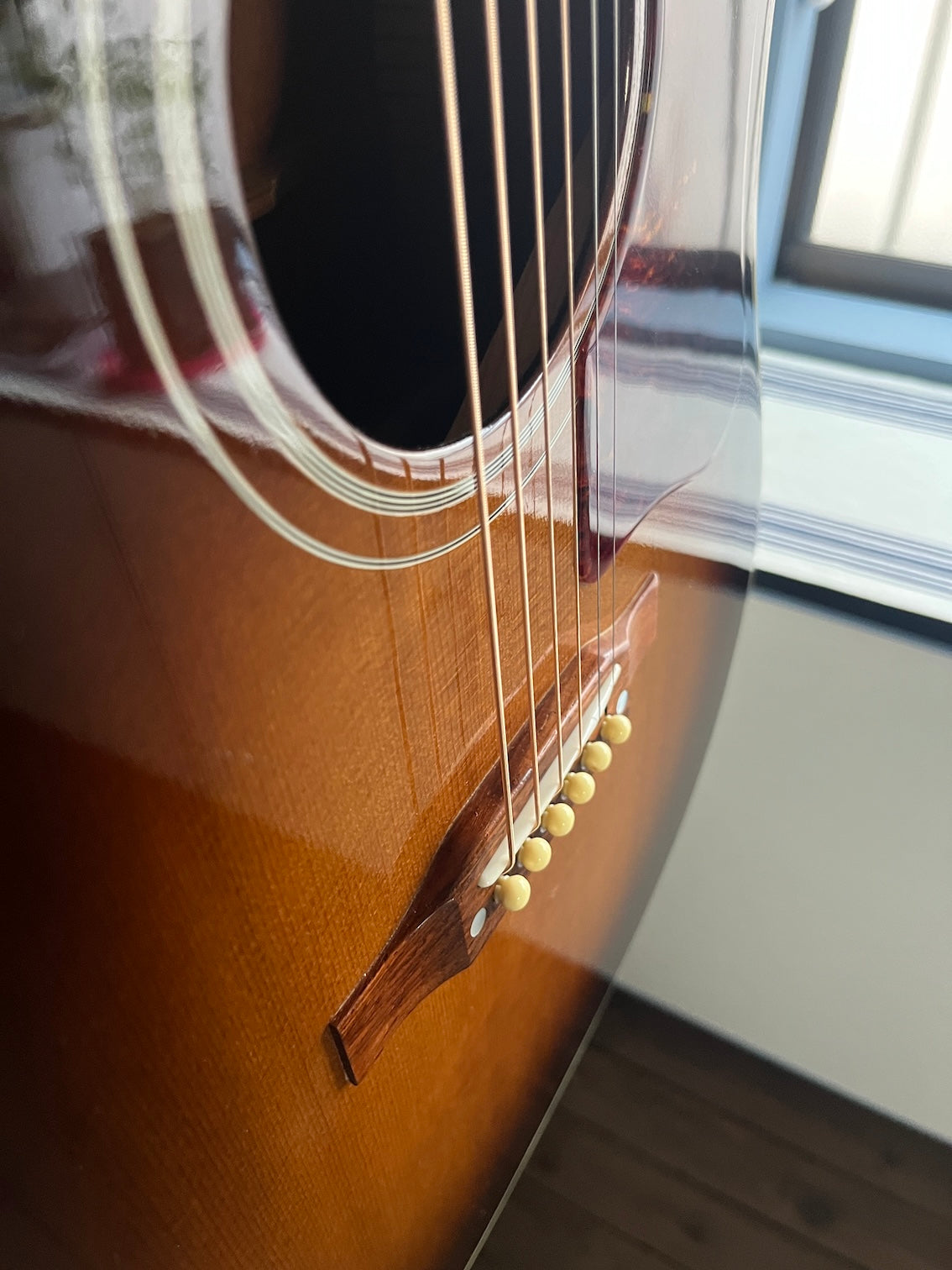 豊かな低音と、クリスピーな高音が相まって、サザンジャンボ、J-45のまさにギブソンサウンドです。