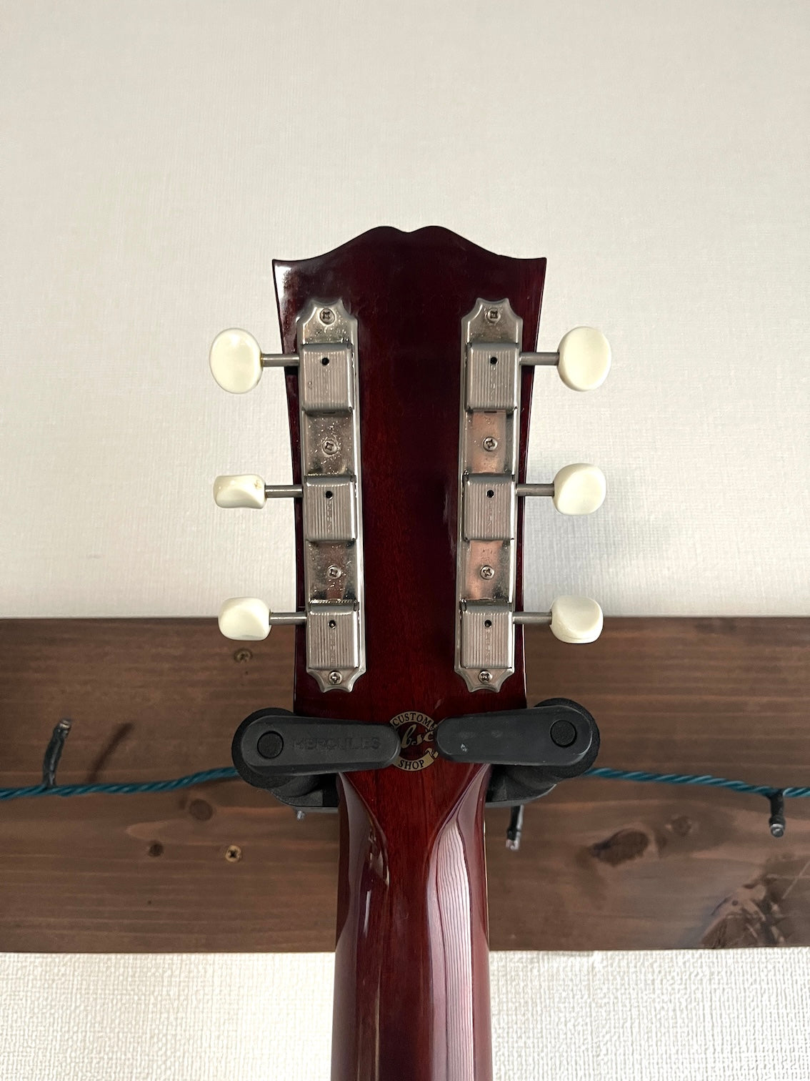 特徴的なものとしては、ラージ・ピックガード、ヘッドのクラウン・インレイ、ネック・バインディング、指板のダブル・パラレログラム・インレイといった仕様です。