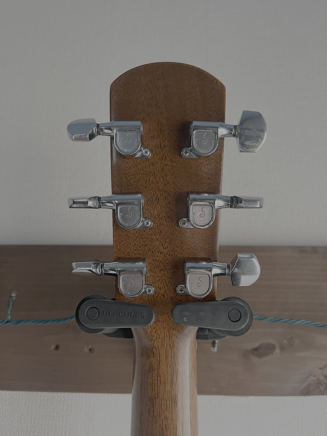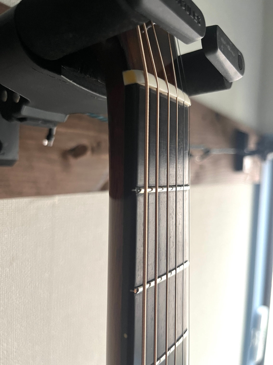 The neck condition is fine. The string height is set low: 2.2mm for the 6th string and 1.7mm for the 1st string at the 12th fret. There isn't much room for adjusting the saddle height.