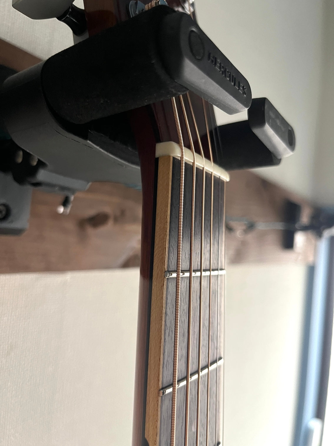 ネックの状態は正常で、弦高は12フレット位置で6弦2.5mm、1弦2.0mmとなっています。