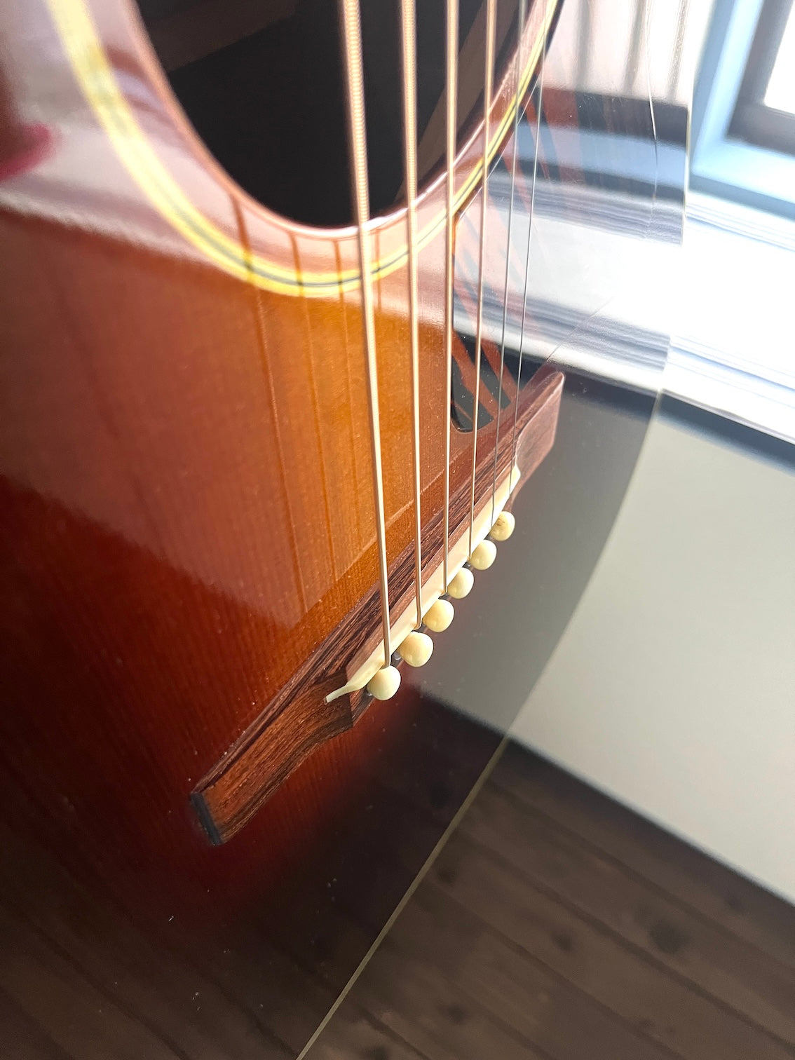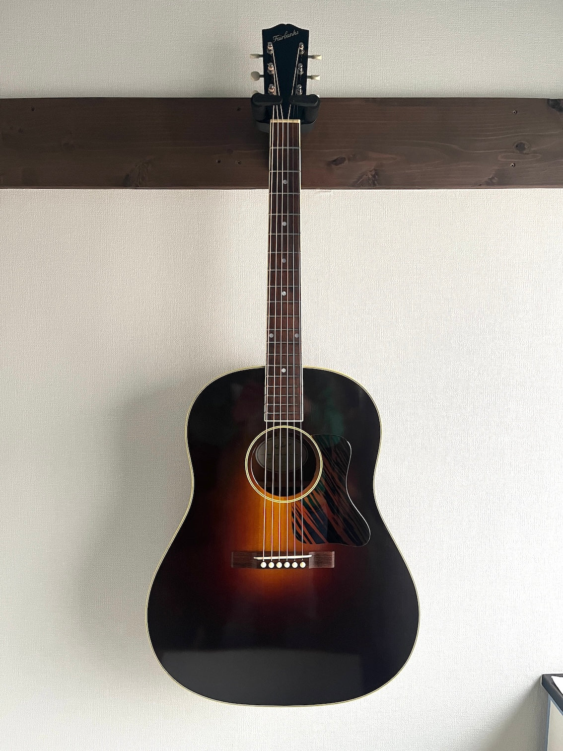 This is a vintage jumbo-style guitar by DaleA Fairbanks of Vermont, USA, who is highly regarded as a Gibson-style luthier. It is a model based on the 1943 J-35.